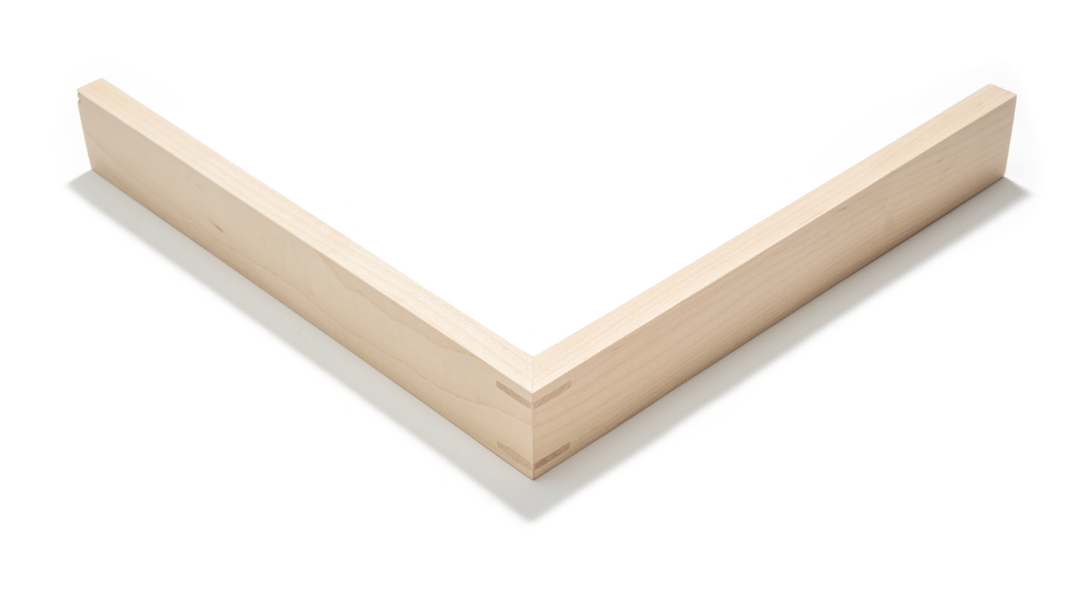 White Ash is stained black to keep the grain on full display. The result is a sophisticated look that fits many styles of artwork. Only available with matching splines.